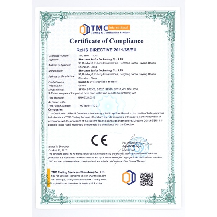 Digitale Peephole mit 3,5-Zoll-Farbdisplay, Videokamera 1.0 mp. Machen Sie Ihr Zuhause sicherer, indem Sie dieses fantastische SN520A Digital Peephole installieren. Durch die 1,0-MP-Videokamera haben Sie eine detaillierte Ansicht. Mit einem Weitwinkel von 130 Grad haben Sie einen größeren Blick auf den Bereich in der Nähe Ihrer Haustür.