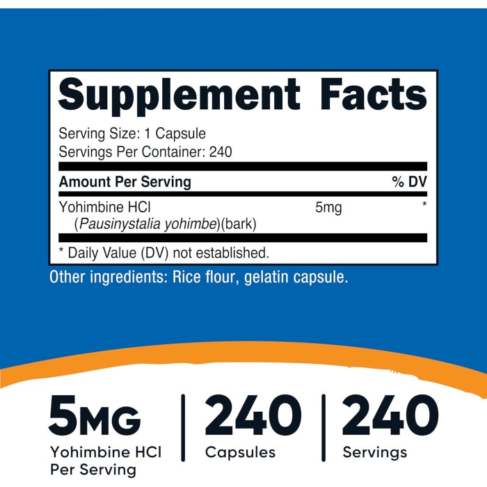 Fragen und Antworten zu: Nutricost Yohimbine HCl 5 mg – 240 Kapseln | Natürliches Thermogenese- und Energiesupplement