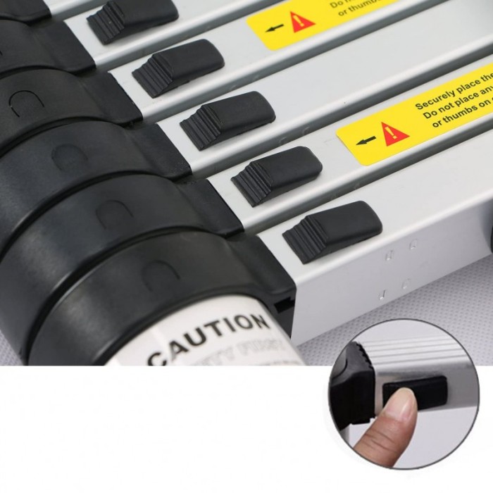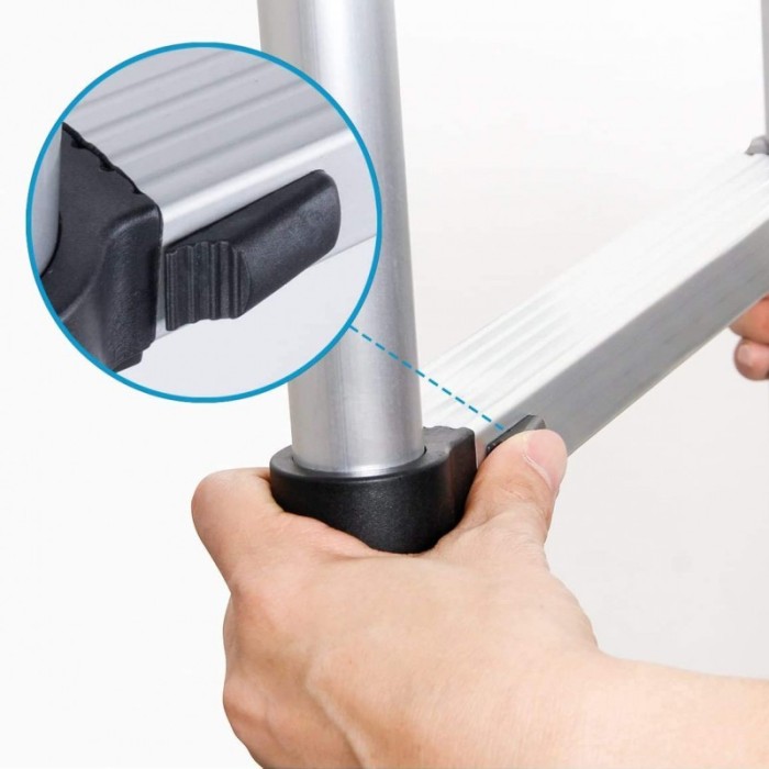 Diese teleskopische Klappleiter aus eloxiertem Aluminium ist robust, sicher und leicht zu transportieren. Mit 40 mm rutschfesten Stufen und einer Stabilisierungsstange bietet sie hohe Sicherheit. Jede Stufe ist mit doppelten Verriegelungen ausgestattet, die ein unbeabsichtigtes Schließen verhindern. Kompakt zusammenklappbar und leicht tragbar – perfekt für Haushalt, Bau, Garten und Wartung.