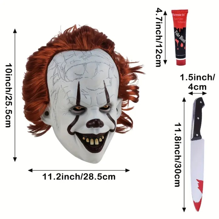Enthaltene Accessoires: Perücke, Hut / Spukdekoration, böses Clownlächeln