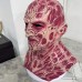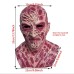 Freddy Krueger Rote Full-Face Horror Maske aus Latex mit Narben und realistischen Tattoos. Verstellbarer Riemen hinten sorgt für guten Halt. Vollständige Gesichtsbedeckung mit Aussparungen für Augen und Nase. Ideal für Halloween, Cosplay oder Partys im Horrorstil. Flexibel und robust für ein intensives visuelles Erlebnis.